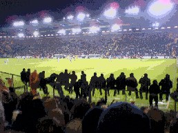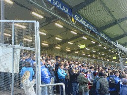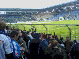 Samstag 02.12.05 Heimspiel in Bielefeld Am Samstag machten wir uns auf die Reise in die Provinz zum Heimspiel nach Bielefeld !!! Es war mal wieder saukalt !!! Am Stadteingang parkten wir unser Auto und nahmen die U-Bahn Richtung Stadion!!! Hier traf man dann auch schon die ersten Schalker und man stimmte die ersten Lieder an! Gerade angekommen am Stadion ging es dann erst mal ab zur ersten Wuerstchen-Bude zum Wurst-Test, unser Ergebnis für 2,30 wäre ja auch wohl ein ganzes Broetchen drin gewesen !!! Naja weiter gings in Richtung Gaeste-Tribuene die wir durch mehrere Absperrungen auch erreichten. Scheiße Bier vergessen denn im Gaestblock gabs mal wieder nur Cola und Kinderpunsch. Zum Glück das wir schon ordentlich vorgetankt hatten. Danach ging es ab in den Block! (ca. 10x5 Meter !!!) Naja eng ist ja schließlich gemütlich!!! Die Stimmung war sehr gut ! 150 Minuten lang klatschten, hüpften und sangen wir mit den ca. 8000 Schalkern im Stadion. Während dessen hörte man von den 18.000 Bielefeldern gar nichts !!! Erst als sie in der 88. Minute noch mal eine kleine Chance sahen, hörte man ein leises Biehhhleefällt im Stadion. Aber dann war auch Schluß und wir mußten wieder Richtung U-Bahn. Das stellte sich aber schwieriger heraus als wir gedacht hatten, denn die netten Herren in grün schickten uns einmal quer durch die ganze Stadt zum Hauptbahnhof, anstatt uns zur Haltestelle direkt am Stadion zu leiten. Suuper !!!! Fazit: scheiß Stadion (zumindest die Gästetribuehne) wieder mal kein Alk im Block scheiß Sicht aufs Spielfeld keine Stimmung bei Arminia aber nächstes Jahr kommen wir wieder !!!! Das beste waren übrigens die Eintrittskarten, dort stand in dicker Schrift: DIE LEIDENSCHAFT GEHT WEITER ! Aber welche Leidenschaft? Oder steht der Spruch zu Recht nur auf den Gästekarten ???? | |||||||||||||||||||||||||||||||||||||||||||||||||||||||||||||||||||||||||||